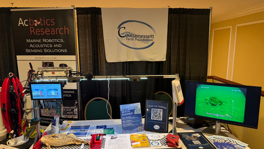 The display highlighted the collaborative efforts by Acbotics Research to engineer tools that can interface with Lowell Instruments remote transmission data hub for use by CFF, other researchers, and fishermen to supplement survey data.