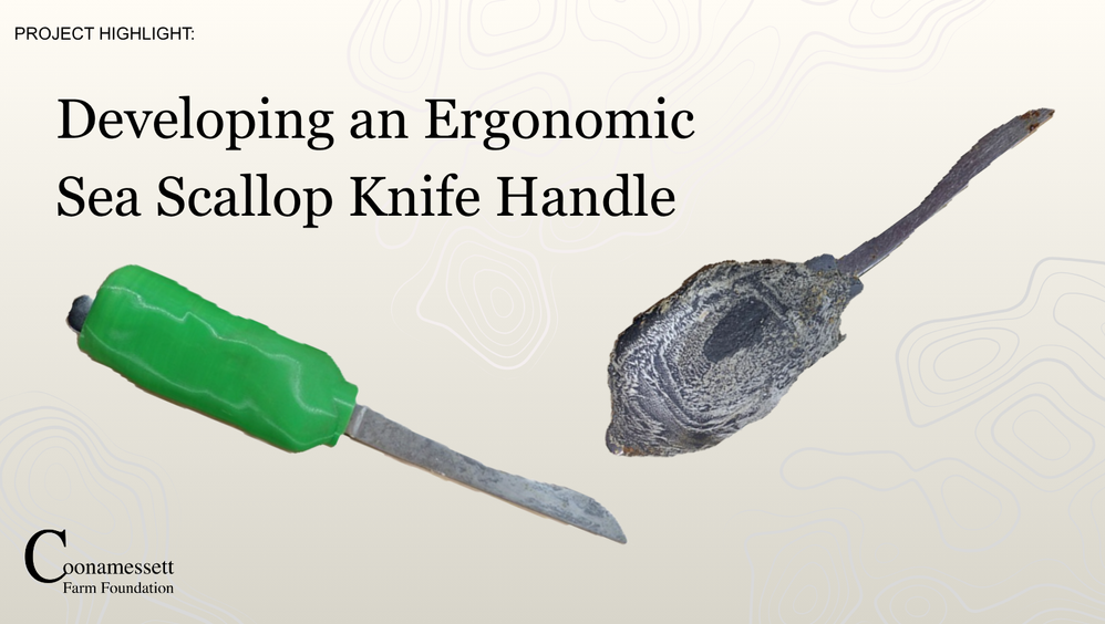 Sea scallopers will routinely add friction tape to their knife handles to make them easier and more comfortable to grip while shucking, reducing flexor muscle activity by 14% compared to a knife handle that is not taped. Using 3D scanning, we are evaluating the custom knife handles created by sea scallopers to design an ergonomic handle that reduces the risk of developing musculoskeletal disorders like carpal tunnel syndrome.